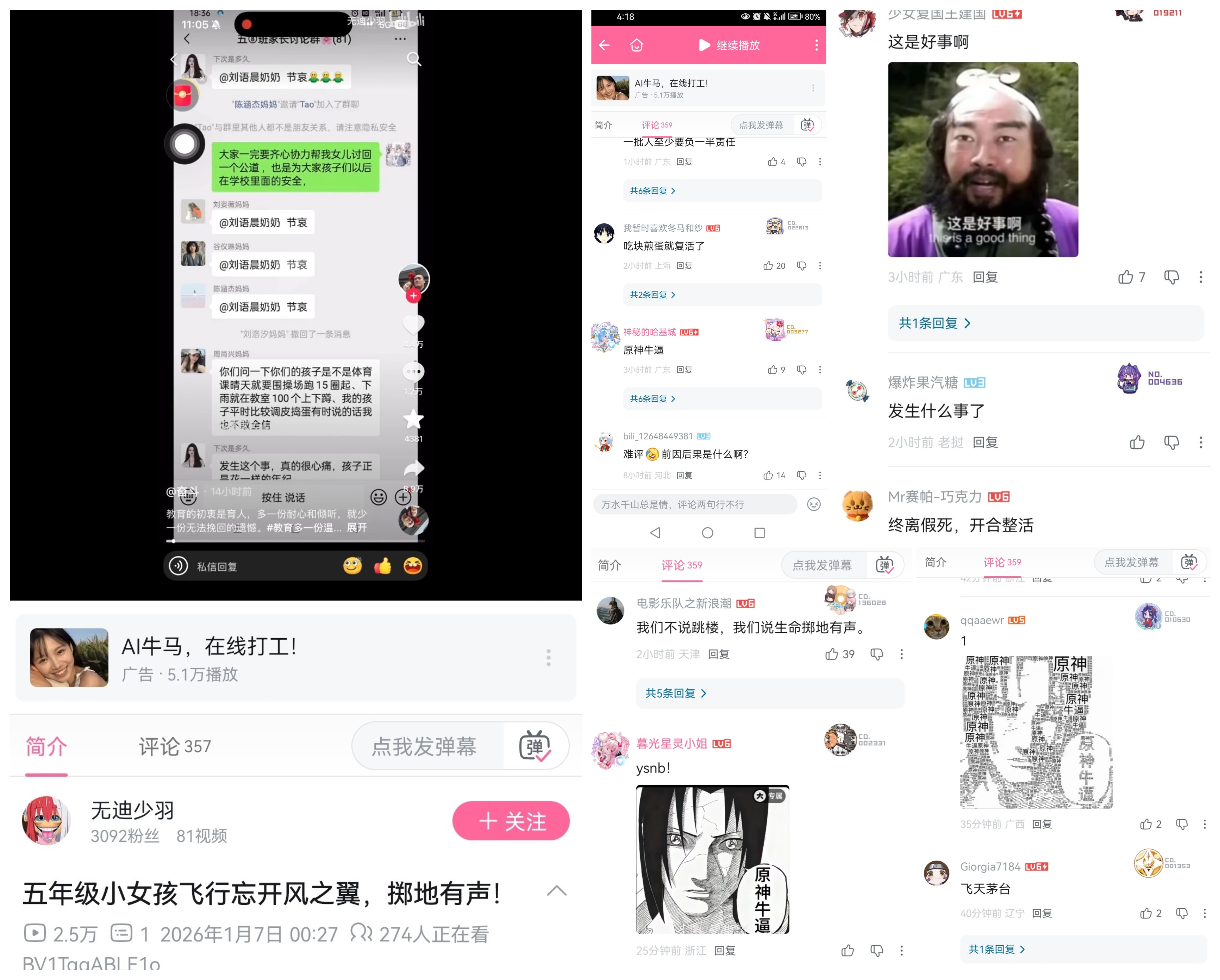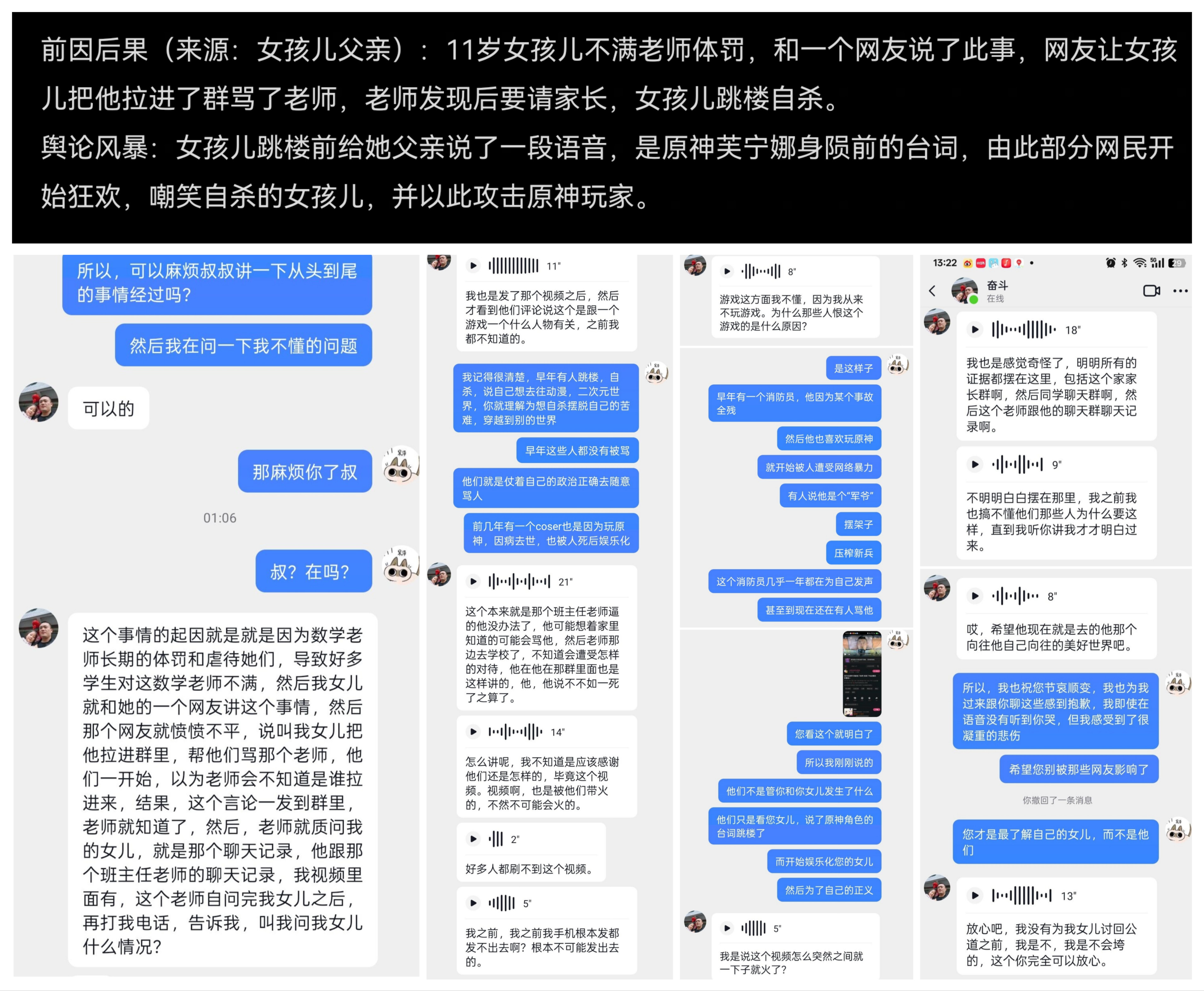 该 11 岁女孩因不满老师体罚,和一位网友说了此事,该网友让女孩将其拉进群辱骂老师,老师发现后请家长,该女孩跳楼自杀。
