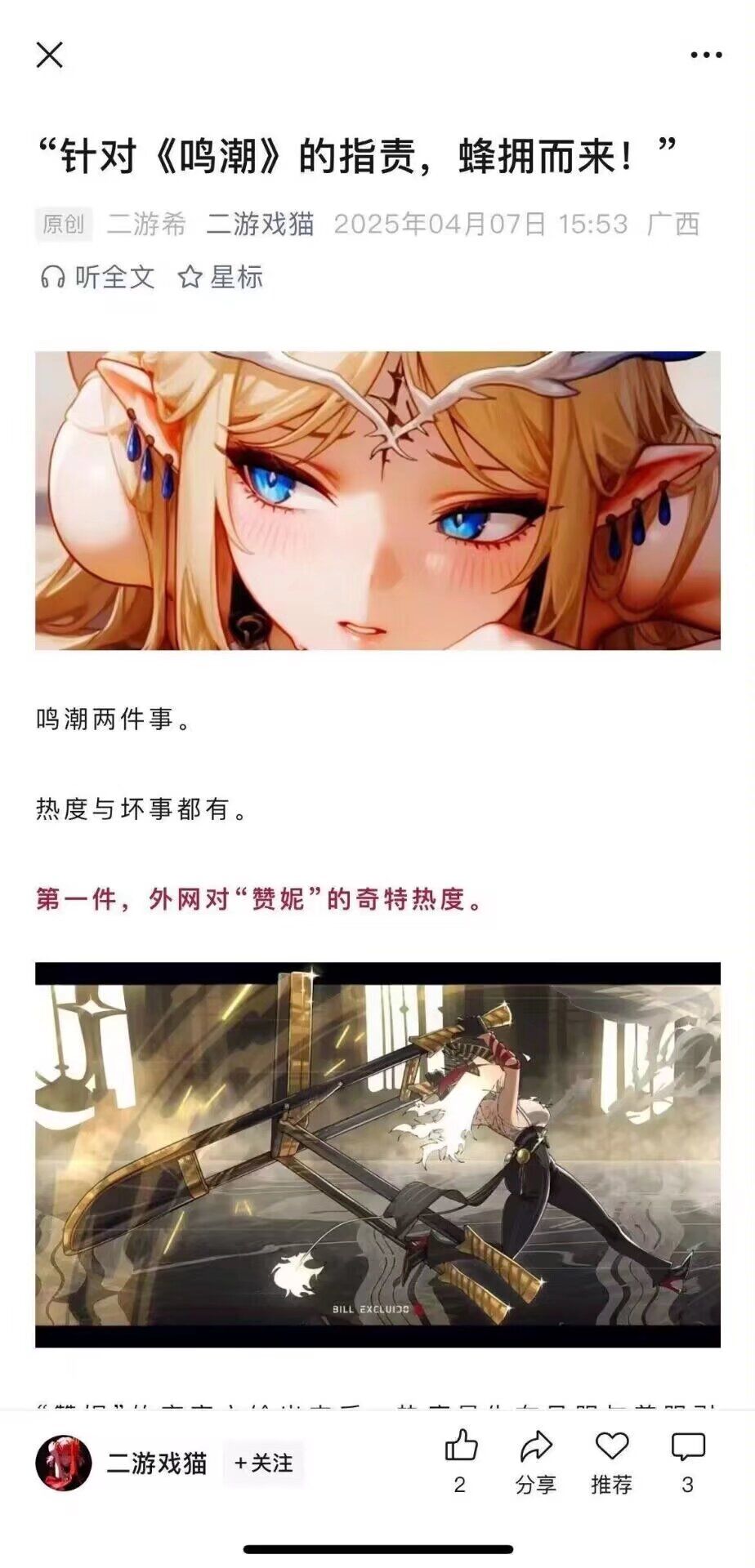 二、为什么库洛已经道歉了,这事儿还是上了各大官媒新闻报道?同样原因——在敏感时间点撞了枪口,仔细看过通稿,就能品味出来:「中国游戏」是提及鸣潮的重点描述。至于怎么敏感法,怎么撞的枪口,自己品,说出来过不了审。